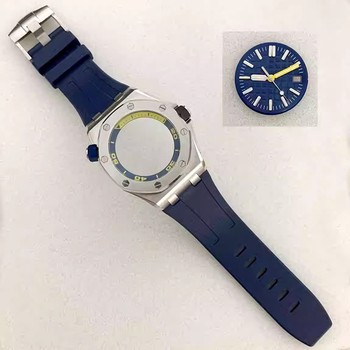 Caja de acero inoxidable de 42mm de doble cabeza con manos literales y correa de goma, adecuada para movimiento NH35