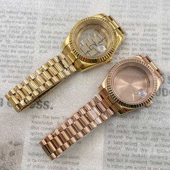Caja de reloj estriada de oro o oro rosa de 36mm y 39mm con banda President y cristal de zafiro para movimiento NH35